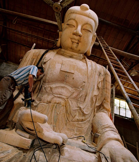 The word ‘Zen’ arrives to the West from Japan that was in turn received from Buddhist China with ultimate origins in India where the Sanskrit word Dhyāna (ध्यान) carries the meaning of ‘absorption’, most often translated as ‘meditation’ in English. Particularly with its development in China, a certain Taoist flavor was adopted so that certain schools came to develop Za-Zen, a ‘seated’ form of meditation that implies stillness, quiet contemplation. However, it has been acknowledged that a number of human activities might qualify so long as one approaches a state of complete fixation and absorption. Particularly, in the former sense of requiring complete attentiveness, Zen practice lends itself to traditional craft such as carving, playing music, weaving and cooking to name a handful.